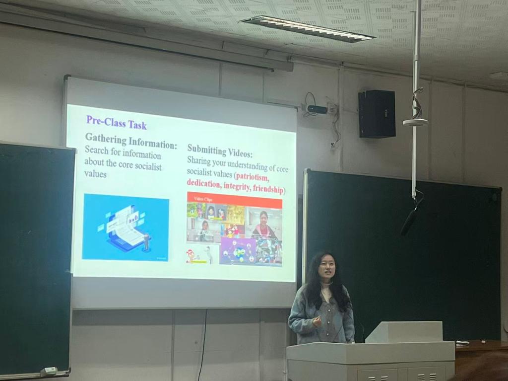 马卉老师(《演讲与辩论》):以专业人才培养方案为依托,介绍课程设计与发展历程,构建“语言——知识——能力——育人” 递进式培养目标。针对 “跨文化实践场景不足、评价反馈不及时” 等痛点,提出内容、方法、思政三维创新举措,并展示 20 分钟课堂实录,完整呈现教学落地效果。