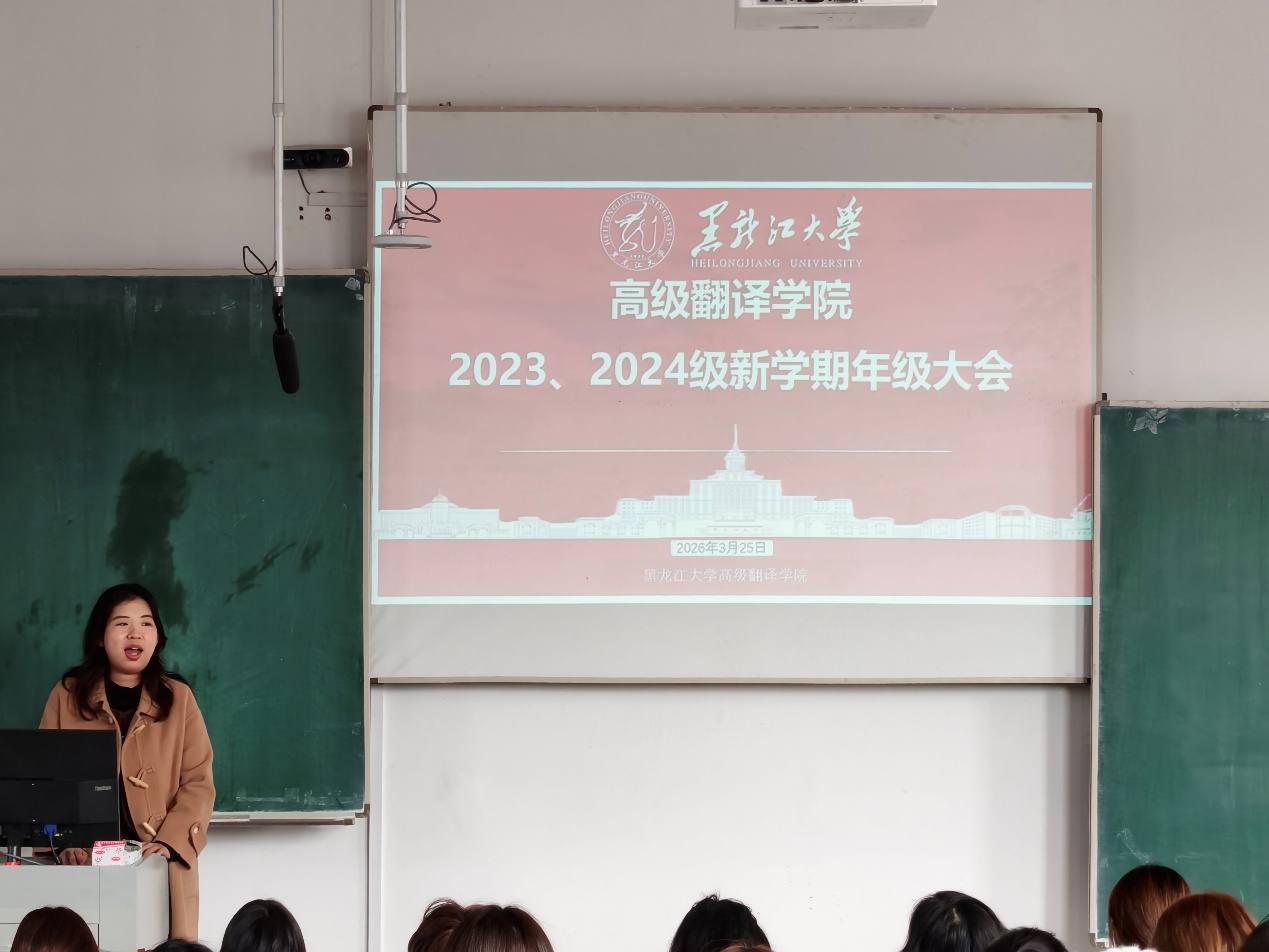 会上,各年级辅导员带领全体学生深入学习贯彻党的二十大和二十届历次全会精神,引导学生将个人成长融入国家发展大局。针对毕业年级学生,李家源老师聚焦学位论文撰写、专业实习推进、就业行动落实等关键节点,给出针对性指导建议,鼓励同学们抢抓机遇、主动作为,尽早实现高质量就业;李文秀老师围绕本科各年级学业核心要求,从课程学习深耕、专业实践拓展、升学就业规划等方面提出具体指引,勉励本科生夯实翻译专业基础、积极参与学科竞赛,树立清晰的阶段发展目标;于佳丽老师聚焦新生身份适应关键期,围绕科研入门路径、课程学习方法、学术规范要求等内容展开系统讲解,引导学生尽快适应新学期学习生活。