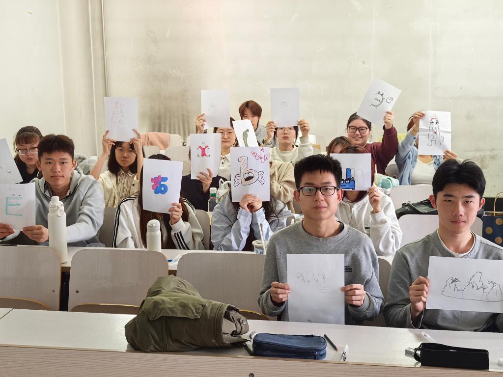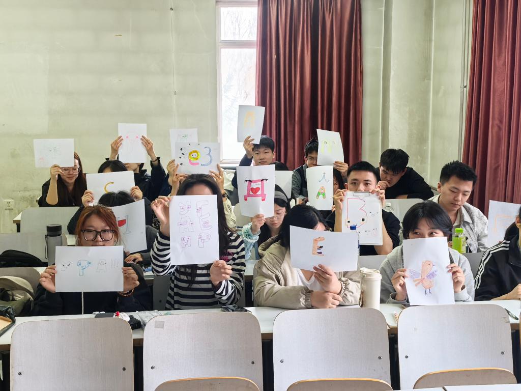 此外,现场还设置了“字母造词”“汉字与字母联想”等小游戏,帮助同学们在互动中掌握语言基础规律。活动还设置了“创意绘字母”等实践环节,同学们将单词转化为创意图画,在创作中加深对语言构成的理解。互动讨论环节,同学们围绕词汇记忆、语法学习等问题积极提问,结合翻译专业特点,夯实语言基础,培养跨语言思维。