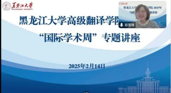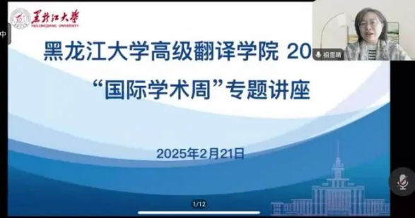 为搭建学术交流平台,增强师生对学科前沿动态了解,拓宽师生国际视野,提升跨文化学术交流能力,丰富师生寒假生活,2月14日——2月21日,黑龙江大学高级翻译学院2025年“国际学术周”专题讲座通过线上方式举行。本次讲座由高级翻译学院副院长祖雪晴主持,高级翻译学院教师,本科生、研究生90余人参加了讲座。